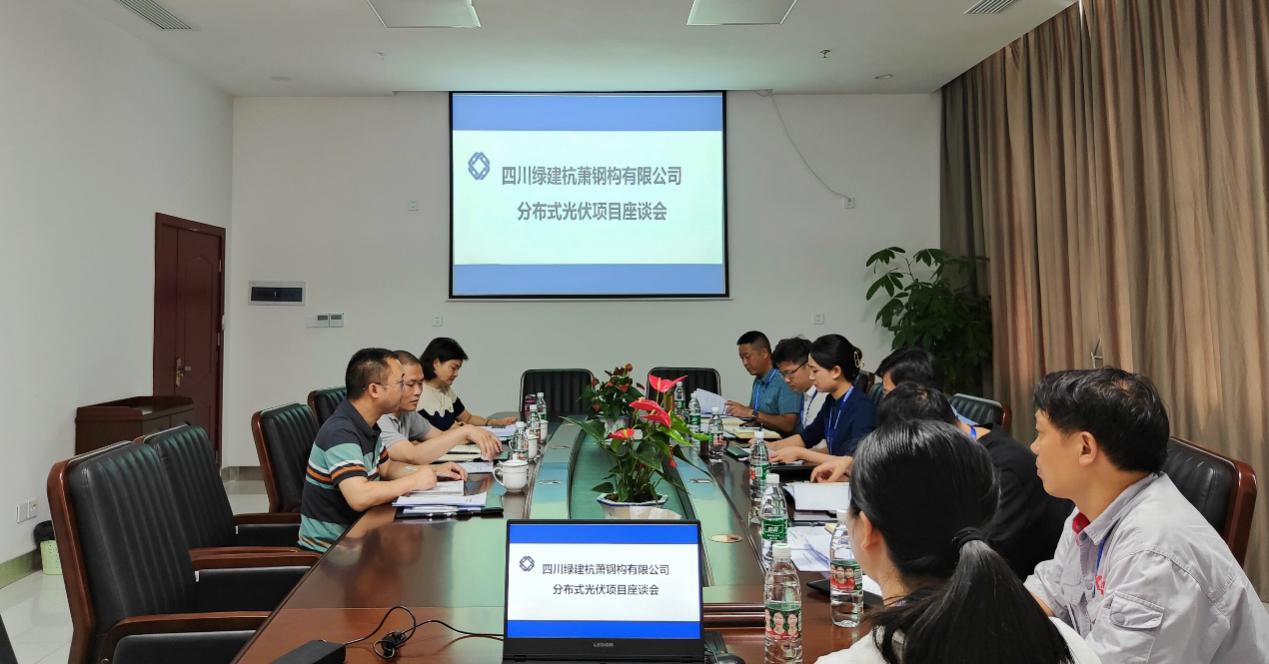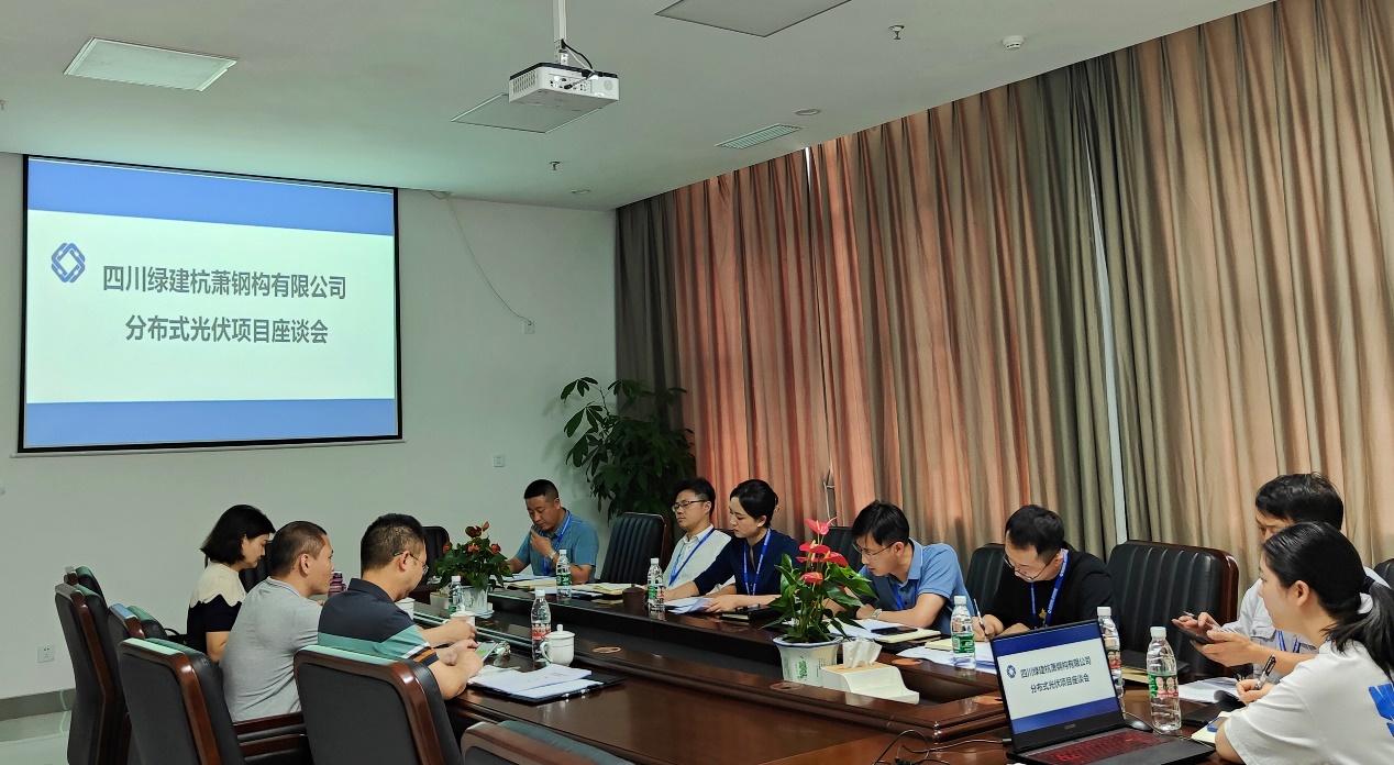 2022年6月30日上午,四川綠建杭蕭鋼構(gòu)有限公司(以下簡稱:綠建杭蕭)與四川省能源投資集團(tuán)有限責(zé)任公司相關(guān)負(fù)責(zé)人共同召開分布式光伏項目座談會。綠建杭蕭總經(jīng)理古敏同志攜領(lǐng)導(dǎo)班子與相關(guān)部門負(fù)責(zé)人參加會議。